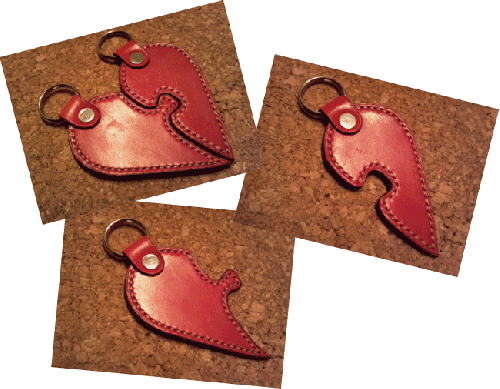 東北復興の思いを込めて、ハート型のペアキーホルダーを作りました。